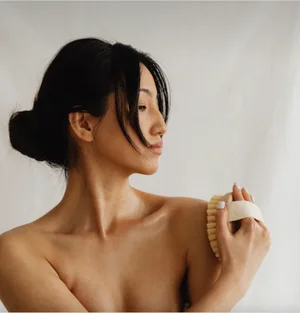 Le brossage à sec est une autre pratique ancestrale souvent négligée. Effectué doucement sur la peau, toujours en direction du cœur, il stimule les vaisseaux lymphatiques superficiels et soutient le processus de détoxification cutanée.